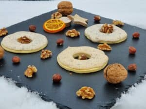 Ein leckerer, zarter und sehr aromatischer Weihnachtsgebäck, das aber zu jederzeit ein Genuss ist. Der Nussbaiser ist luftig und zart schmelzend und wird durch den knusprigen Mürbeteig abgerundet.